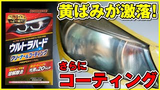 ヘッドライトの黄ばみを除去すると見た目の印象がガラッと変わる。